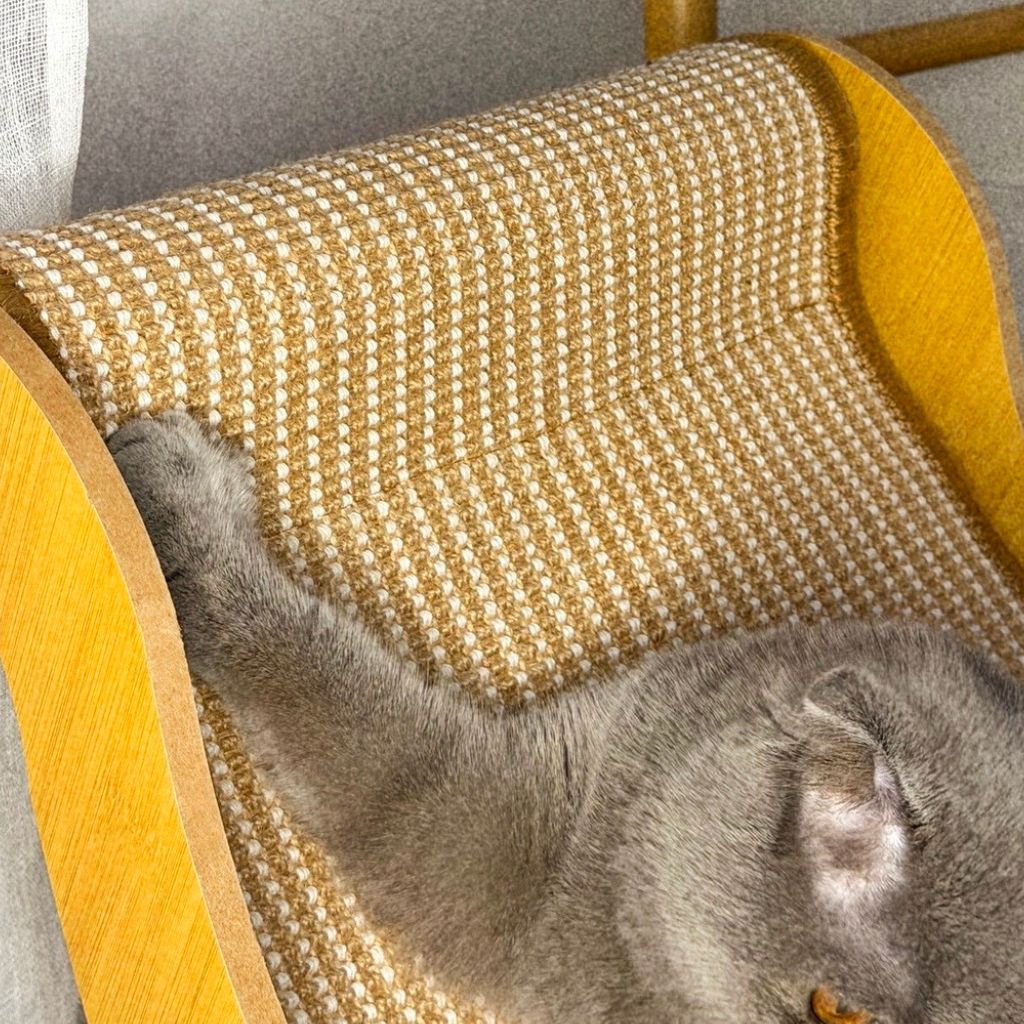 Surface en sisal tressé résistante aux griffures et forme ergonomique qui épouse le corps du chat pour un confort absolu.